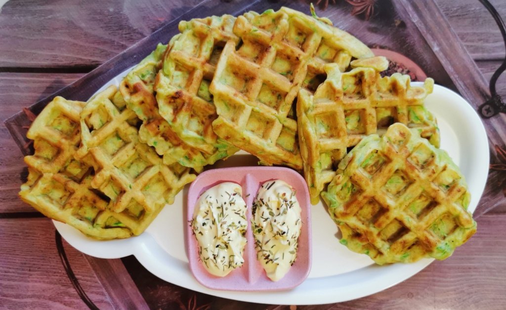 Достать кабачковые вафли из электровафельницы. Постепенно испечь все вафельки, периодически перемешивая тесто. У меня получилось 8 штук. Подать вафли к столу лучше тёплыми, дополнив, по желанию, сметаной или любимым соусом.