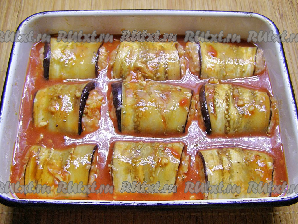 Заливаем рулетики томатным соусом, ставим в прогретую до 180 градусов духовку и запекаем 30-35 минут.