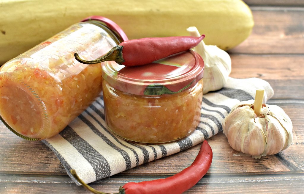 Зимой в меру жгучая, вкусная, аппетитная аджика, приготовленная из кабачков с помидорами и болгарским перцем, станет приятным дополнением к мясным и рыбным блюдам или к различным гарнирам.