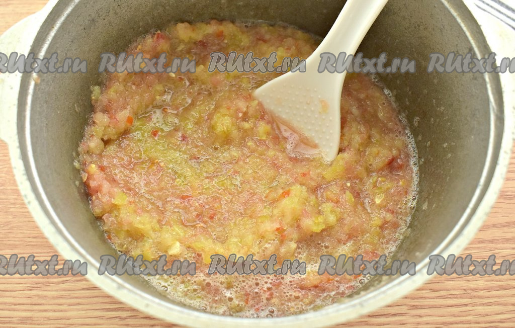 Продолжаем варить аджику, периодически помешивая, ещё 20 минут на небольшом огне.