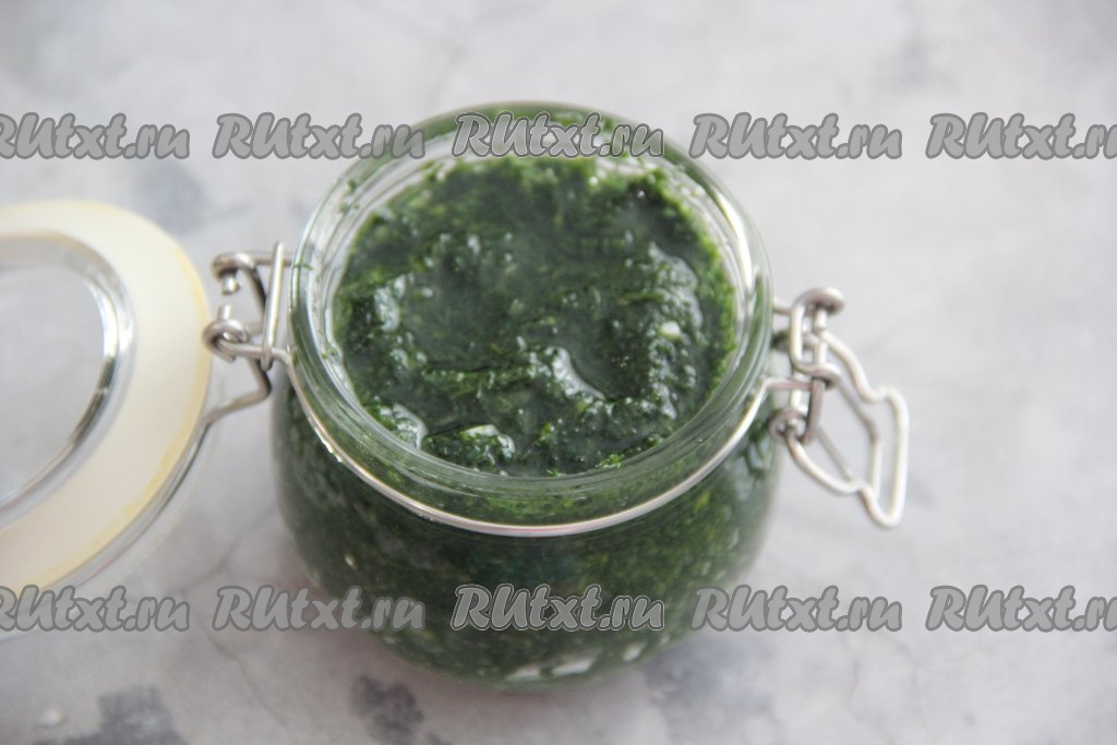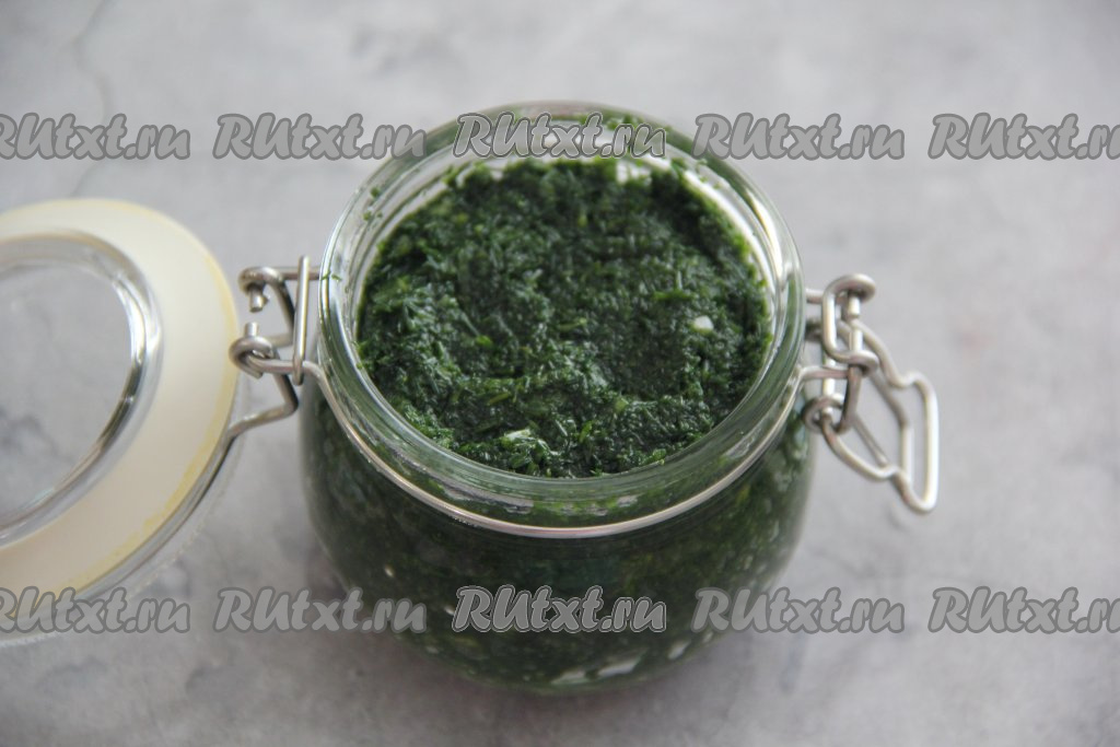 Укропный соус, приготовленный с чесноком и маслом, получается ярким, вкусным и ароматным. Отправляем его на хранение в холодильник. Зимой эта заготовка станет чудесным дополнением к различным блюдам.