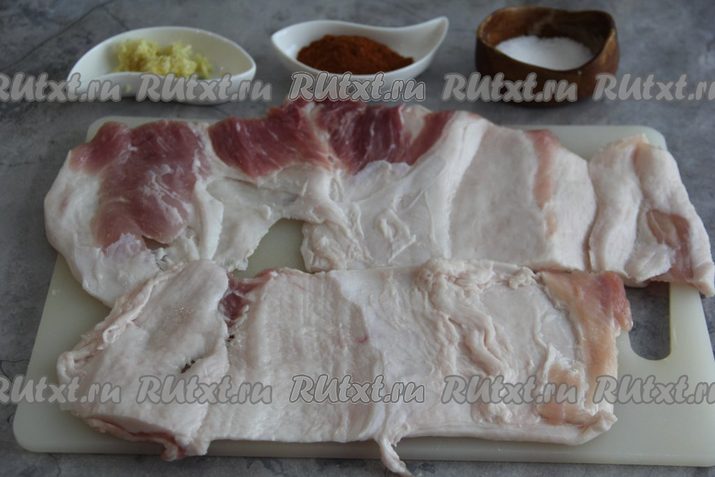 Пласты сала натереть чесноком и солью.