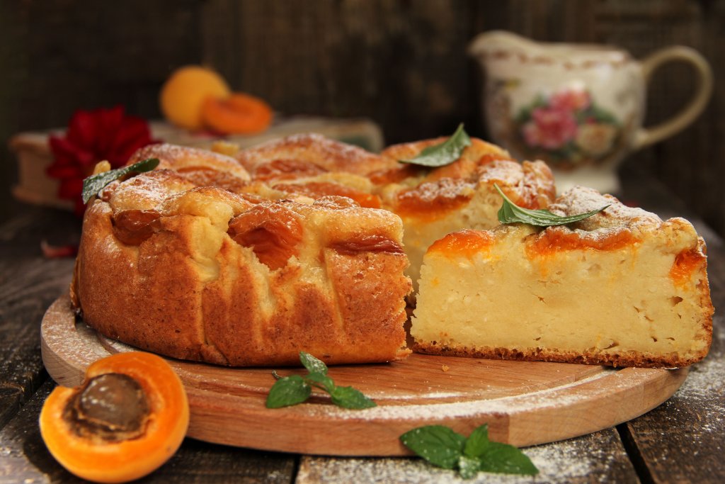 Выпекать творожный пирог с абрикосами в разогретой духовке примерно 1 час при температуре 180 градусов. Готовность можно проверить при помощи сухой деревянной лучинки, если после прокалывания пирога она останется сухой, значит наша выпечка готова!