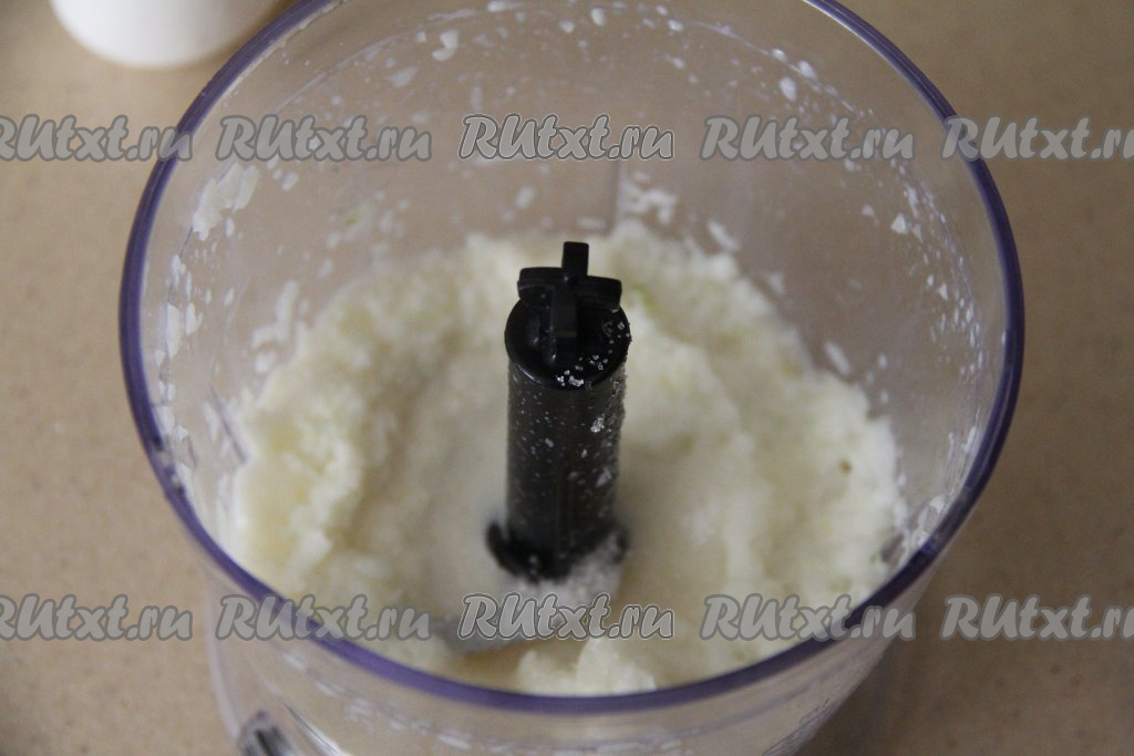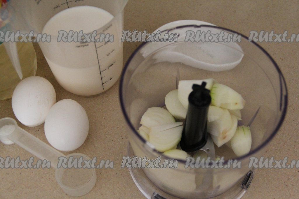 Влить в чашу примерно 50 миллилитров молока и измельчить лук в пюре. Если нет измельчителя, то можете измельчить лук с молоком погружным блендером.