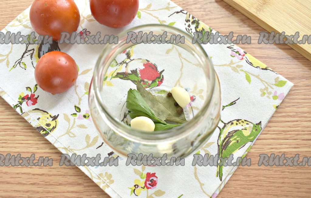 Тщательно промываем помидоры. Нарезаем их на половинки, которые плотно выкладываем в банки срезом вниз.