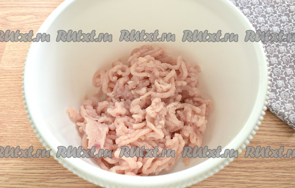 Мясо (у меня - куриное филе), нарезанное на кусочки, прокручиваем через мясорубку.