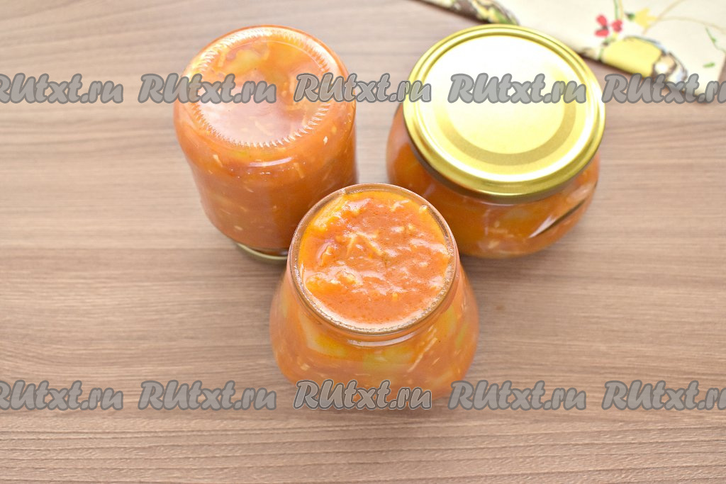 Зимой вкусная, ароматная, яркая закуска, приготовленная из кабачков с помидорами и перцем, станет отличным дополнением к различным гарнирам и мясным блюдам.