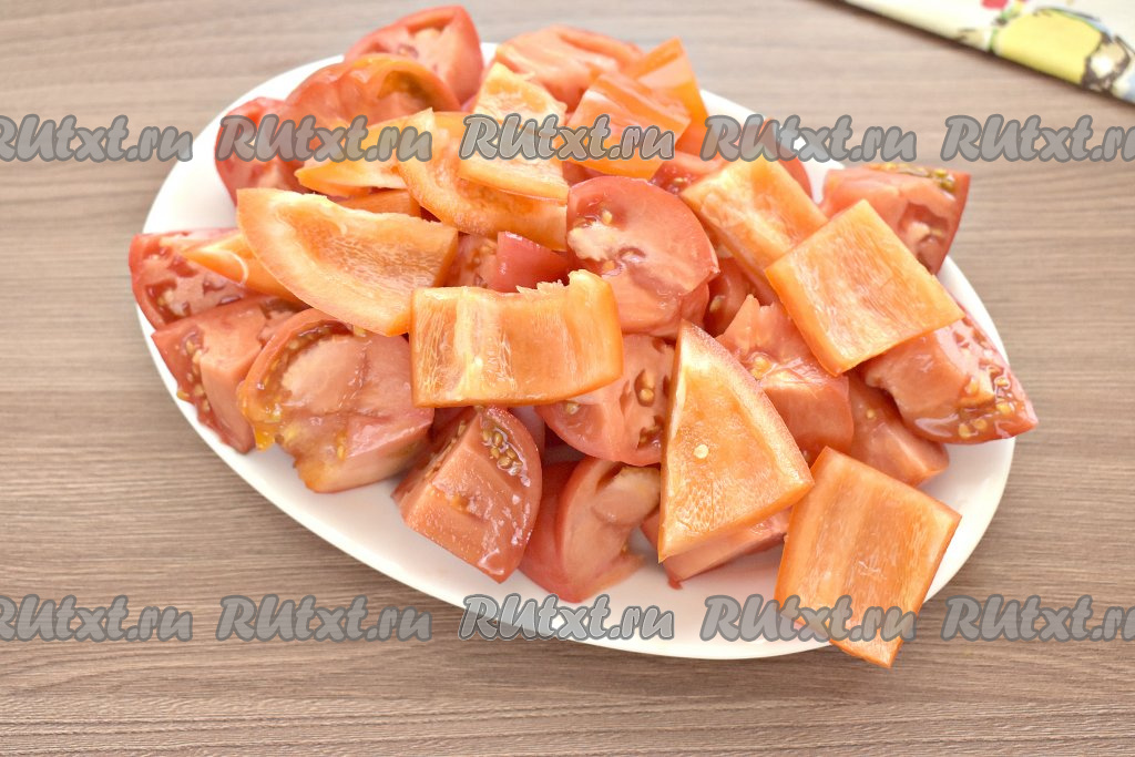 Один болгарский перец и все помидоры нарезаем на кусочки и пропускаем через мясорубку.