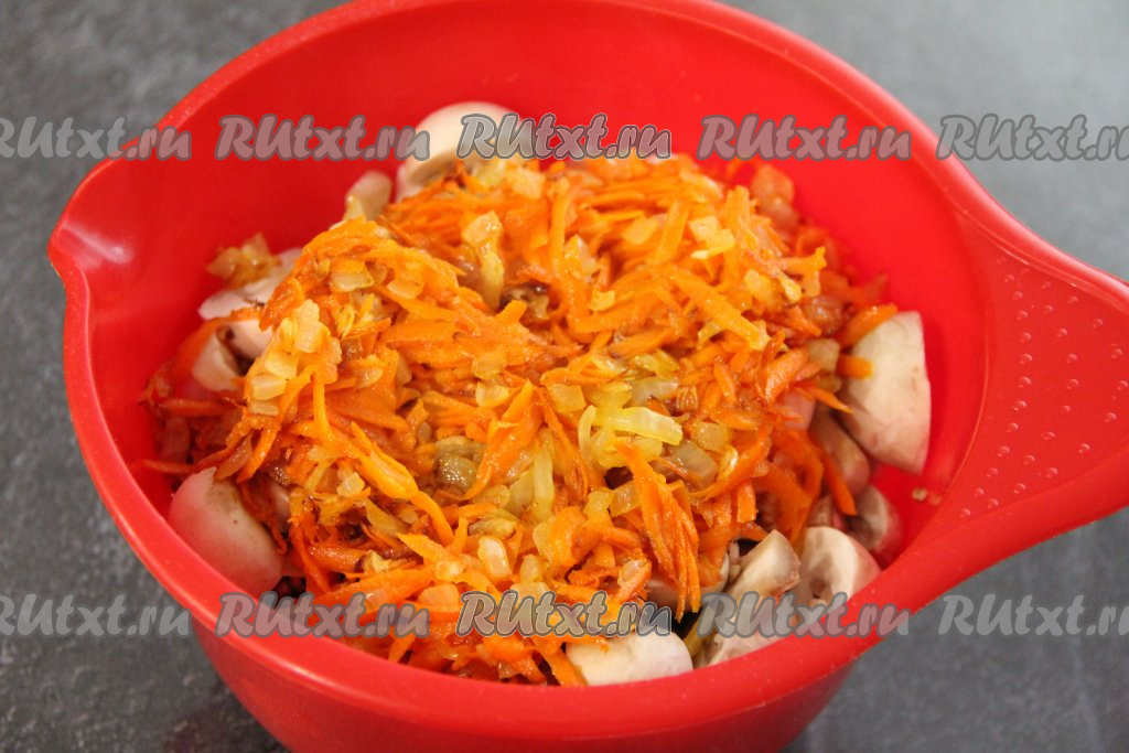 В эту же миску добавить обжаренные овощи.