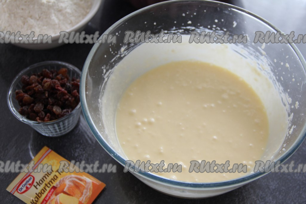 Творожное тесто для кекса должно получиться воздушным и в меру густым, как на фото.