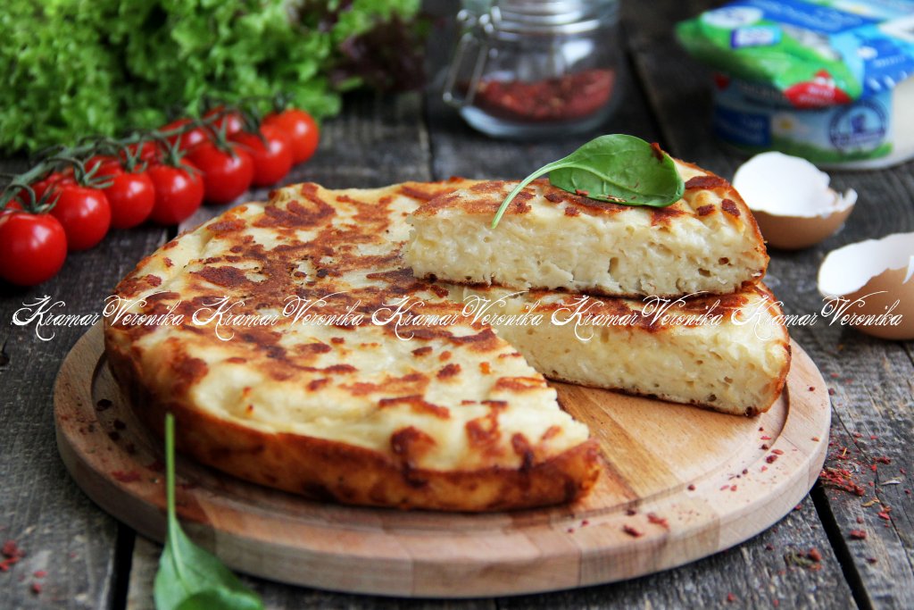 Выпекать ленивое хачапури с сыром минут 15, затем перевернуть и выпекать ещё минут 10.