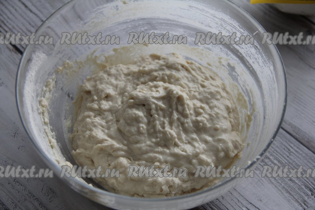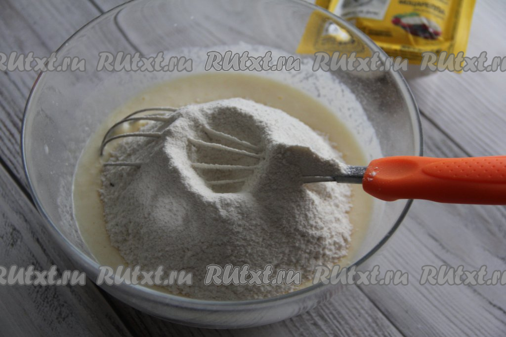 Частями всыпать просеянную муку, перемешивая тесто венчиком.