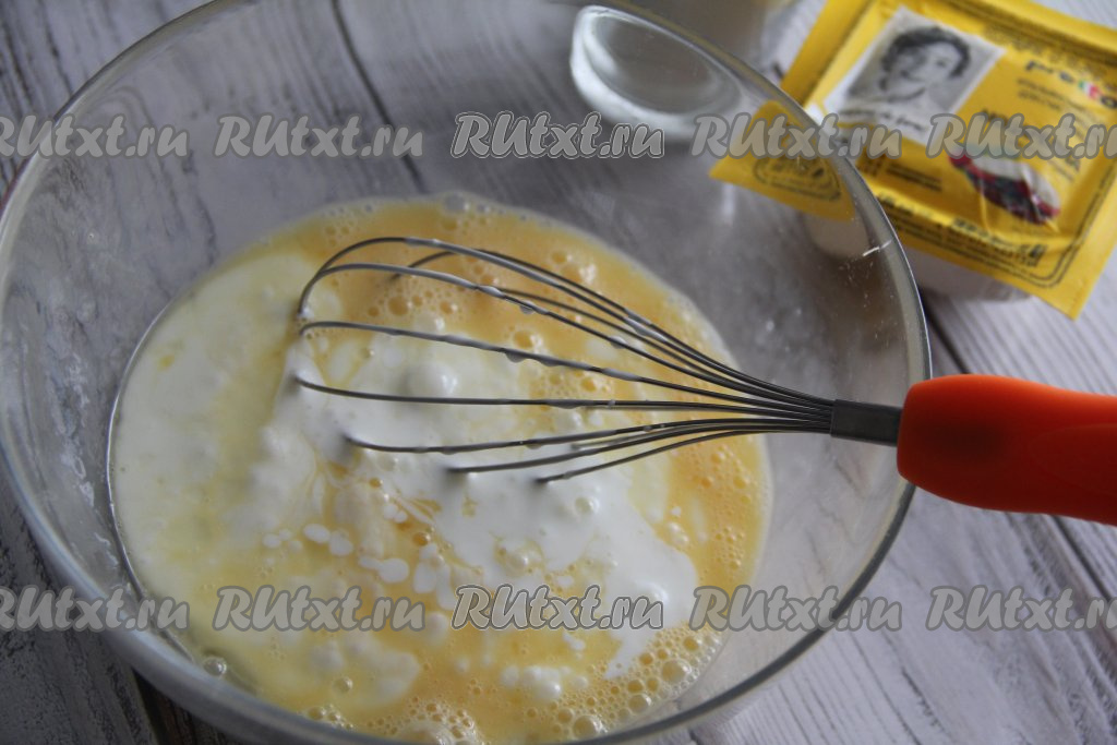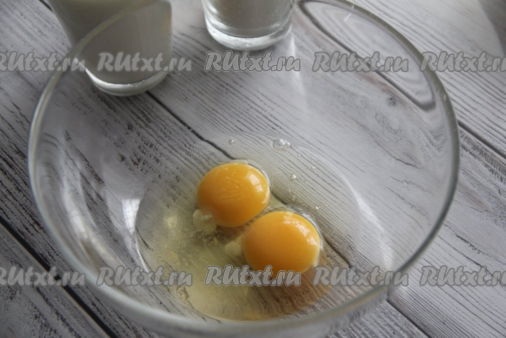В объёмной миске соединить яйца и соль, перемешать до однородности венчиком.