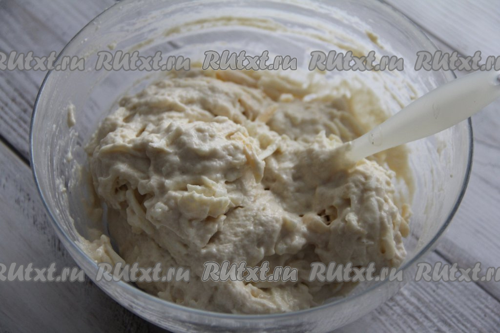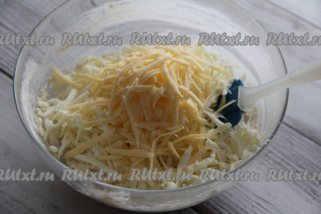 В получившееся тесто добавить натёртый на крупной тёрке сыр.