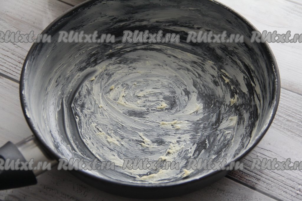 Сковороду (я выпекала на сковороде диаметром 22 сантиметра) смазать сливочным маслом.