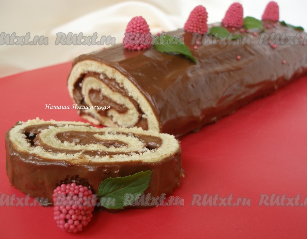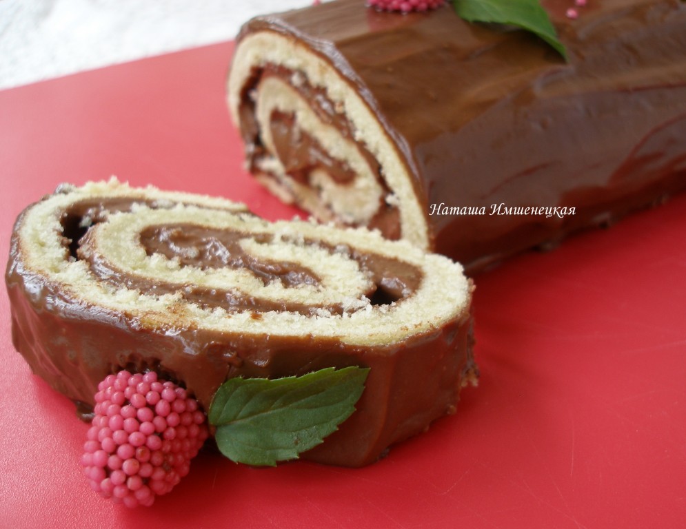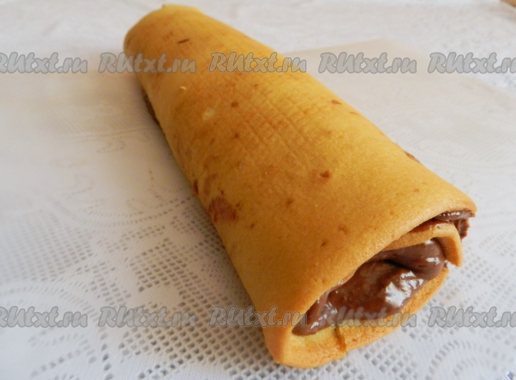 Нежный, вкусный бисквитный рулет с кремом готов.