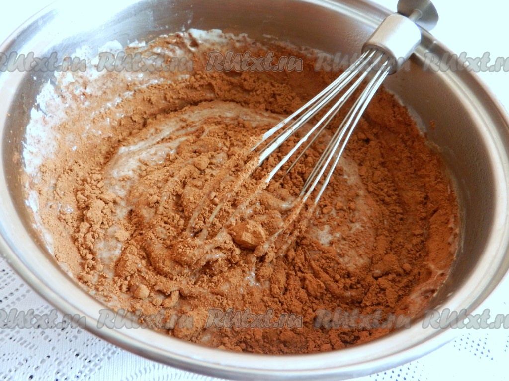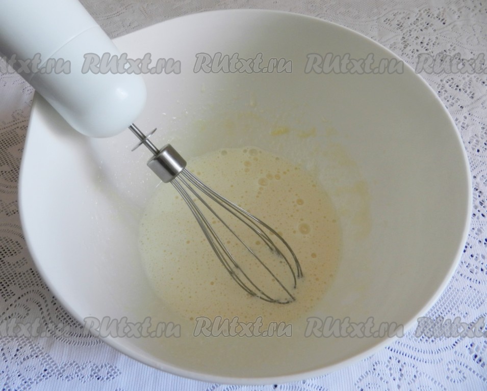 Постепенно всыпать муку, взбить. Получится густое тесто.