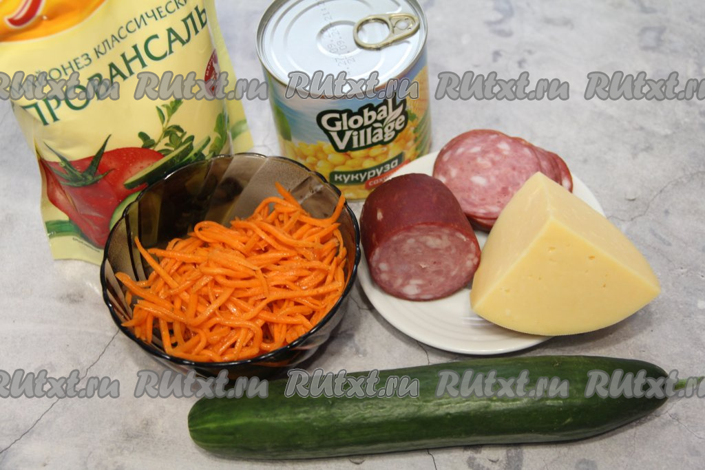 Для приготовления салата с корейской морковью и копчёной колбасой понадобится: