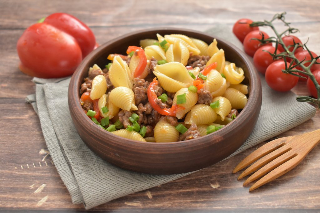 Если вам нужно к обеду или ужину приготовить простое и сытное блюдо, тогда обратите внимание на рецепт макарон, томлёных с фаршем и болгарским перцем. Блюдо получается очень вкусным и аппетитным. Особый аромат и яркость ему придаёт болгарский перец. Приготовьте это простое и вкусное блюдо и оно, наверняка, понравится всей семье!