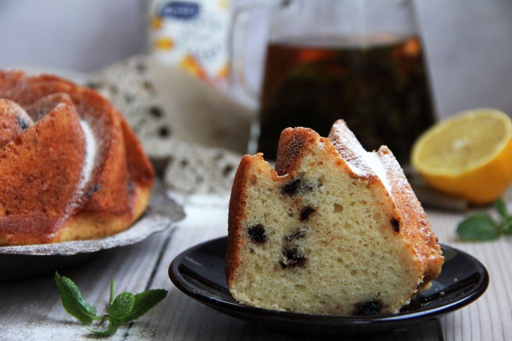 А вот какой разрез у моего кекса, замешанного на фруктовом йогурте.