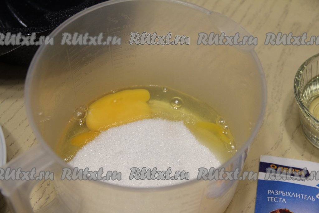 Соединить яйца и сахар в ёмкости, в которой удобно будет взбивать миксером.