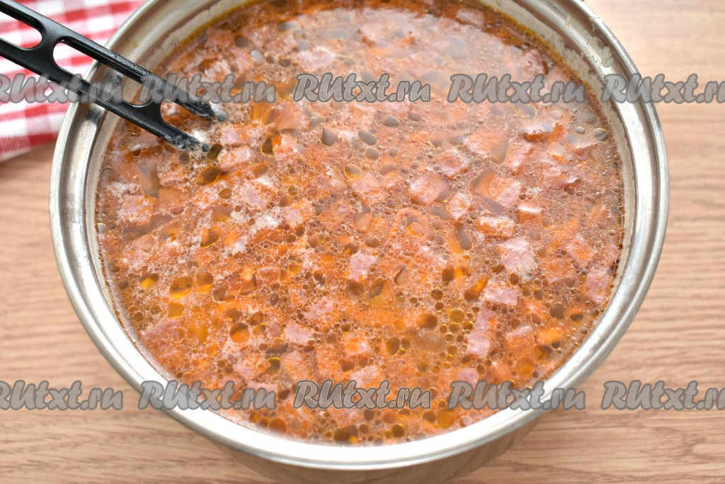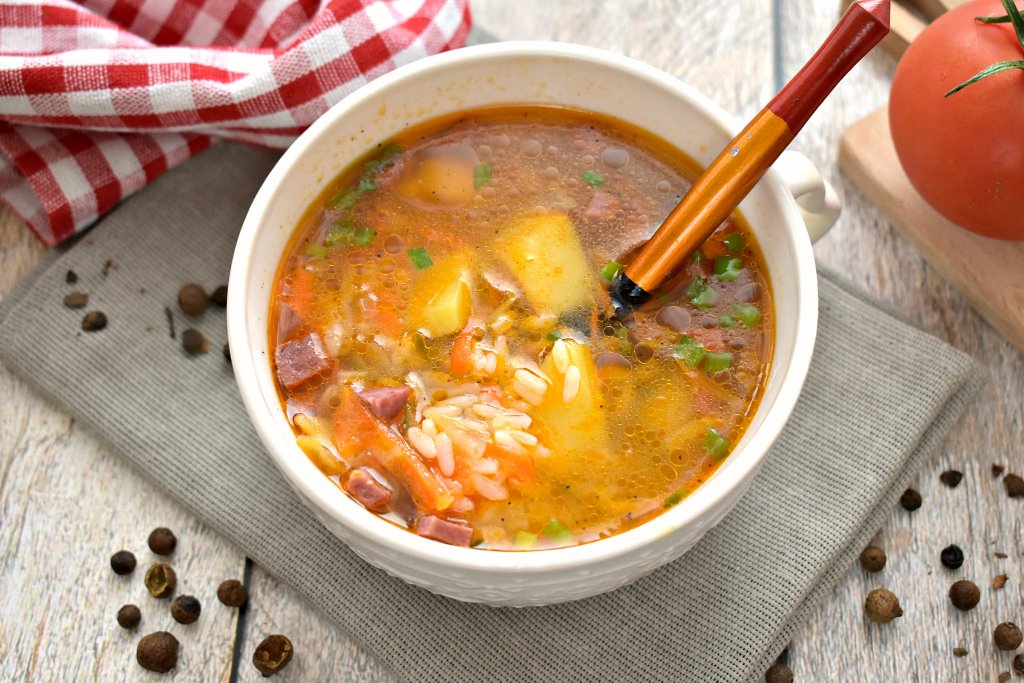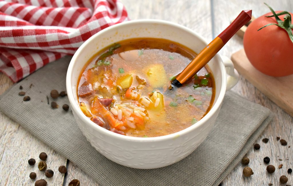 Рассольник, приготовленный с рисом и колбасой, получается аппетитным и ароматным, он прекрасно насытит и порадует отменным вкусом!