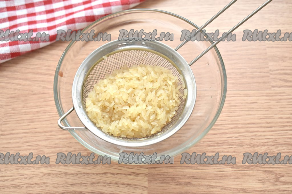 Затем выкладываем в кастрюлю промытый рис, даём закипеть и варим минут 15 на небольшом огне.