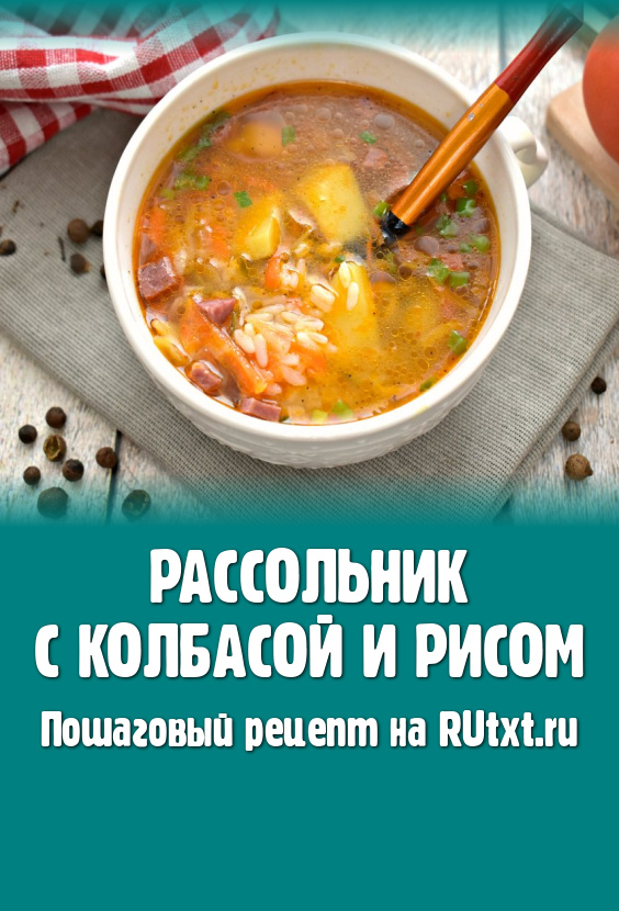 Рассольник - это вкусный и наваристый суп, который чаще всего варят с перловкой и мясом. Однако если времени на приготовление первого блюда немного, тогда можно сварить отличный рассольник с колбасой и рисом. Суп, приготовленный по этому рецепту, получается аппетитным, сытным и очень вкусным. К столу его можно будет подать уже через пол часа с момента начала варки. Приготовьте такой рассольник и он приятно удивит вас своим насыщенным вкусом и ароматом!