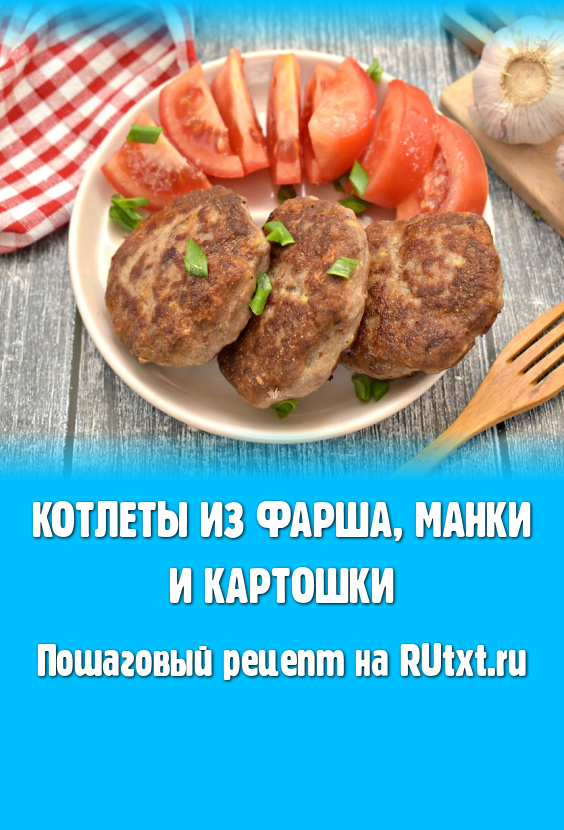 Мясные котлеты, приготовленные из фарша, картошки и манки, получились сочными, нежными, ароматными и, конечно же, вкусными. Подаём их со свежими овощами или любимым гарниром.