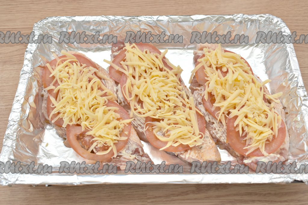 Затем каждый стейк посыпаем сыром, натёртым на крупной тёрке.