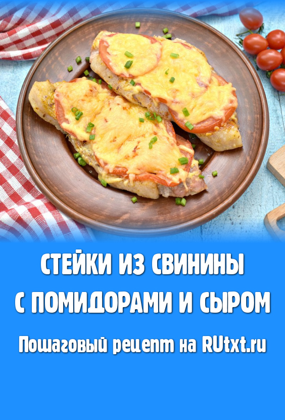 Любителям вкусных и сытных мясных блюд предлагаю запечь в духовке стейки из свинины под помидорами и сыром. Мясо получается сочным, мягким и нежным. Такое мясное блюдо можно предложить к столу не только в будни, но и в праздники. Ведь внешний вид у этих стейков очень аппетитный. Ароматная сырная корочка, запечённый помидорчик и нежнейшая мякоть свинины делают эти стейки очень вкусными!