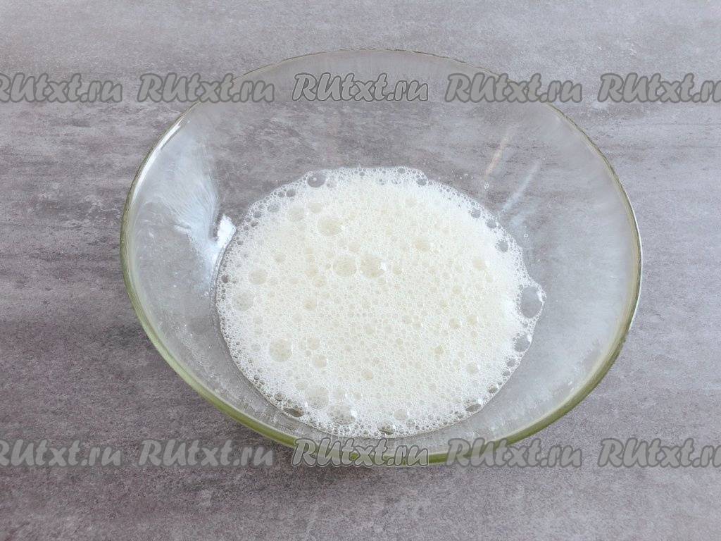 К белкам добавляем щепотку соли и несколько капель лимонного сока, взбиваем 1 минуту на низкой скорости миксера (до появления пенки).