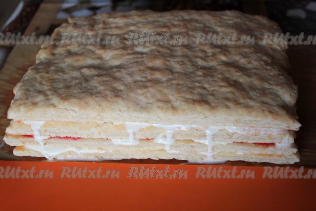 Если планируете такой торт не для домашнего, а более официального чаепития, то подравняйте его по краям или нарежьте на пирожные.
