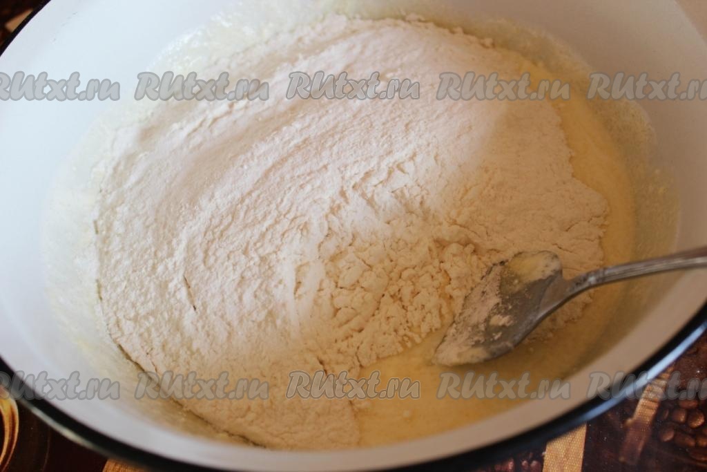Перемешайте ингредиенты лопаткой до образования рыхлого пышного теста.