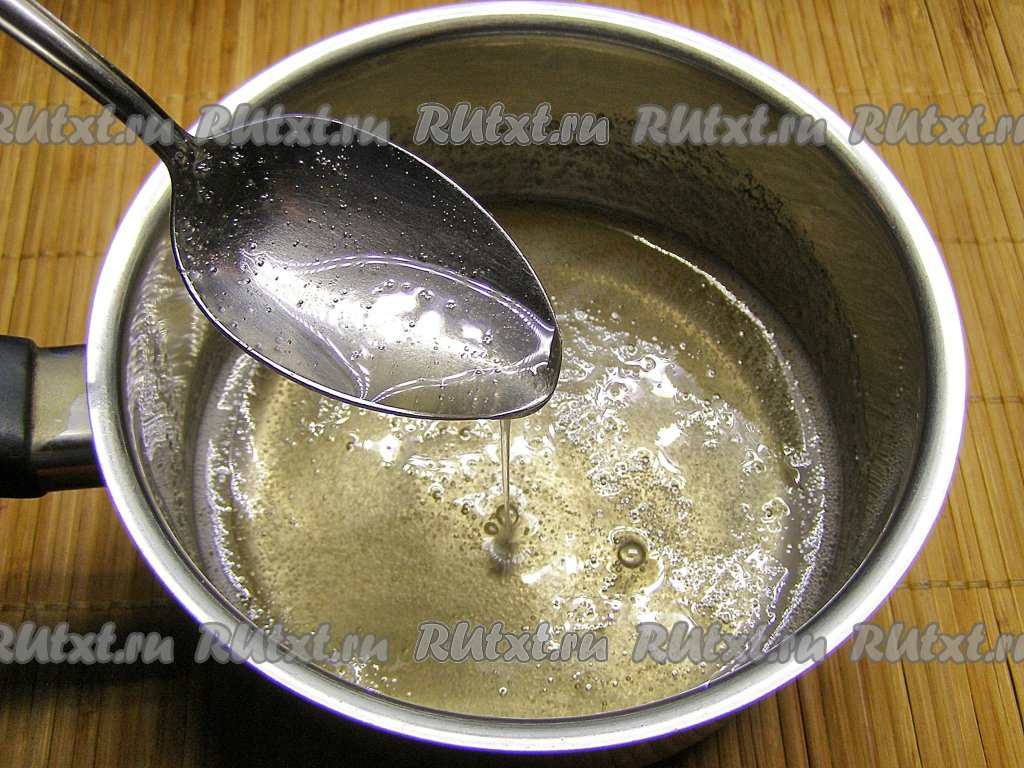 Набухший желатин перекладываем в сотейник и нагреваем на огне чуть ниже среднего, постоянно помешивая, до растворения кристалликов желатина. Важно заметить, что до кипения желатиновую массу доводить нельзя.