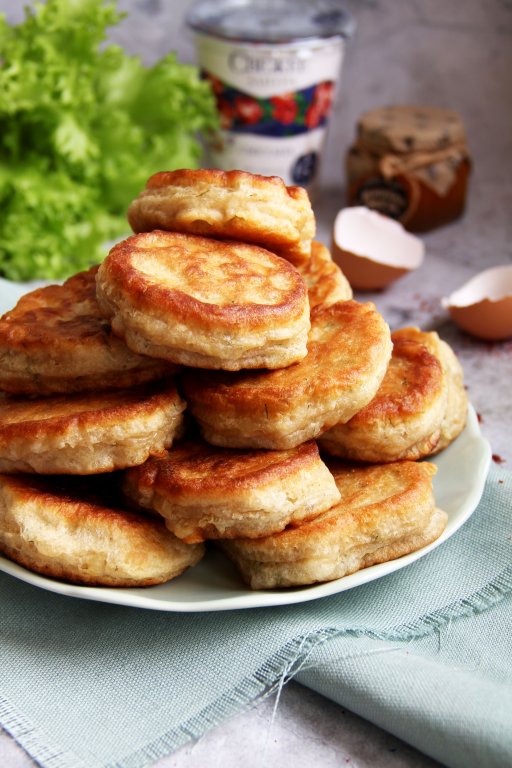 Жарить оладьи на среднем огне с двух сторон до золотистого цвета (примерно по 1-2 минуте с каждой стороны). Готовые оладушки выкладывать на бумажные салфетки для удаления излишков жира. Постепенно пожарить все оладьи, добавляя в сковороду масло по мере необходимости. Тесто для оладий периодически нужно перемешивать.