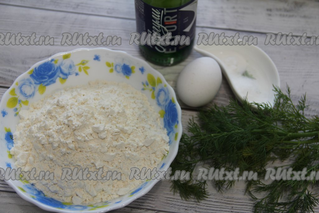 Подготовить продукты. Пиво подойдёт любое, но лучше брать светлых сортов. Пиво можно взять холодное, прямо из холодильника. Укроп (или другую зелень), если будете использовать, промыть и обсушить.