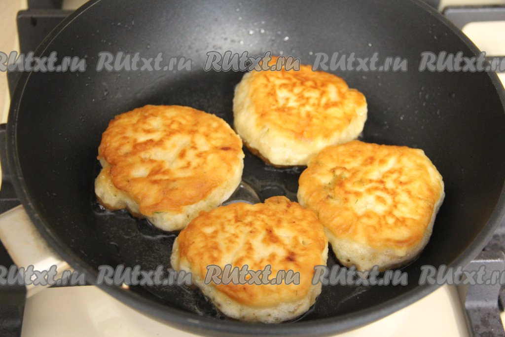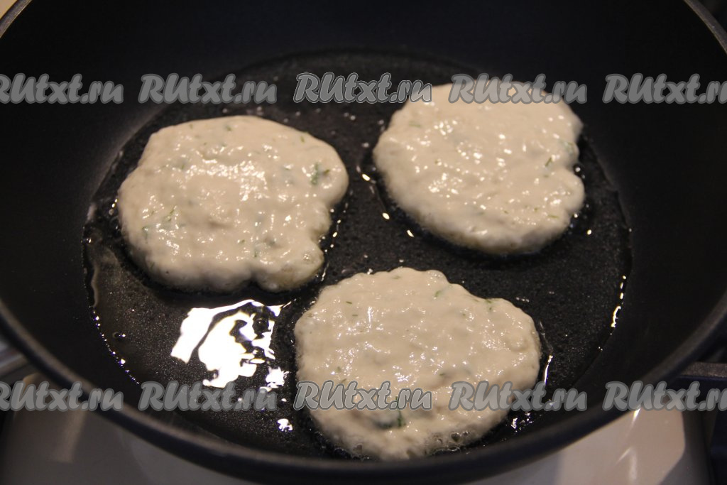 В сковороду влить растительное масло и хорошо разогреть. Выкладывать по 1 столовой ложке теста в сковороду, формируя круглые оладьи.