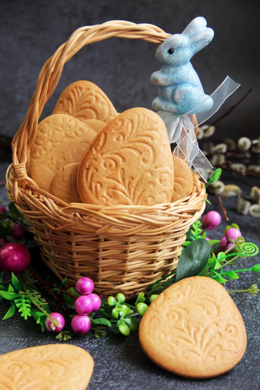 Предлагаю приготовить очень вкусные, рассыпчатые и ароматные медово-имбирные пряники. Испечь их можно к домашнему чаепитию или к празднику (например, к Рождеству или Пасхе). Пряничное тесто, замешанное по этому рецепту, приятное в работе, оно ровно поднимается в процессе выпечки. Придать пряникам можно любую форму, используя различные трафареты. Я пекла к Пасхе, поэтому придала пряникам форму яиц. Готовую выпечку можно покрыть глазурью. Но я нанесла рисунок на пряники перед выпечкой, поэтому решила сделать их без глазури. Приготовьте медово-имбирные пряники по этому рецепту и насладитесь их вкусом и ароматом!