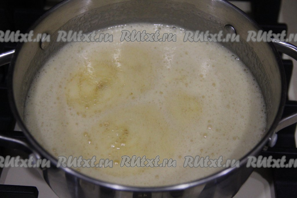 Довести массу до кипения, а затем варить на медленном огне, иногда помешивая, 5 минут.