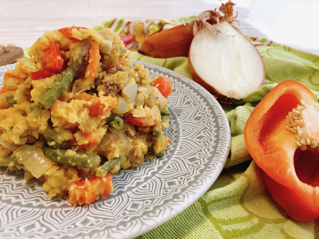 Затем огонь выключаем и оставляем наше блюдо под закрытой крышкой ещё минут на 5, чтобы чечевица впитала в себя сок от овощей и пропиталась ароматом специй. Наше сытное, аппетитное, вкусное блюдо готово!
