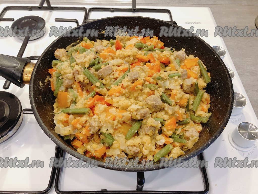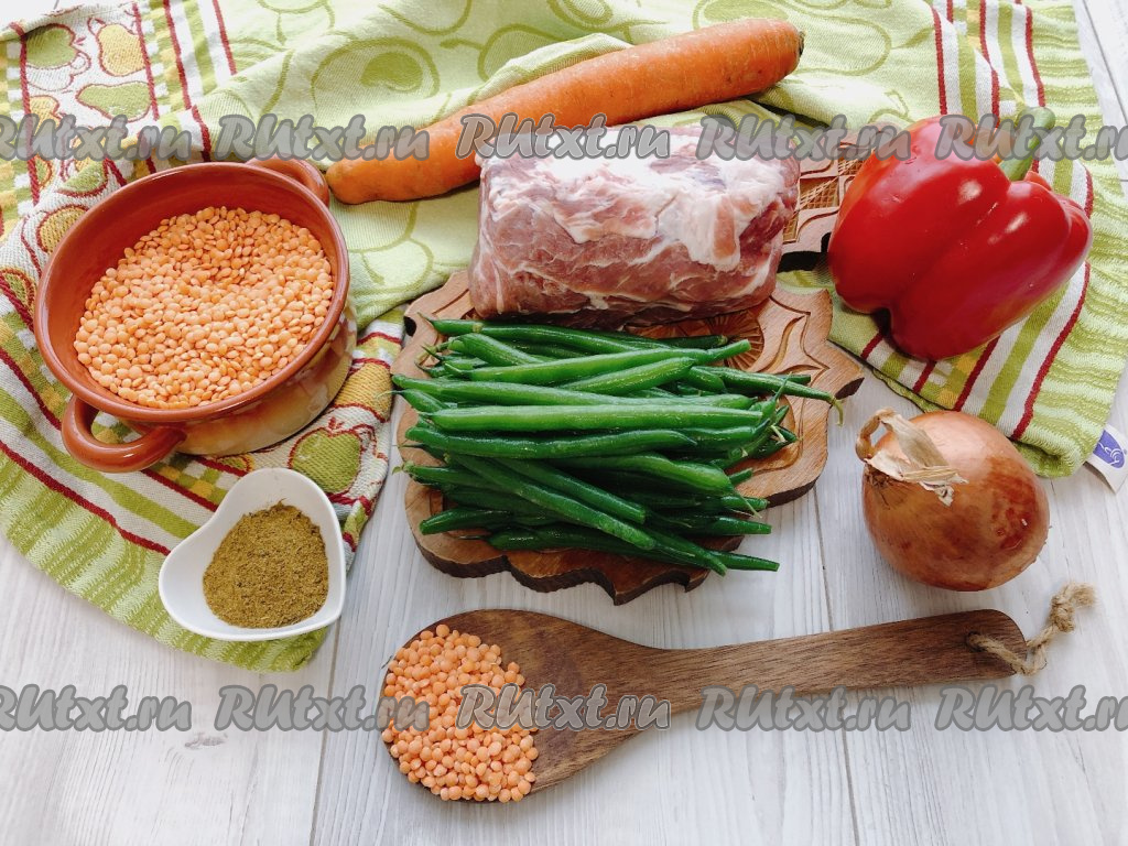 Чечевица - это одна из разновидностей растений семейства бобовых. Она была очень популярна у наших предков, а в современном мире незаслуженно забыта. А зря, ведь эта культура богата витаминами и микроэлементами, в её составе много белка и мало жира, поэтому она показана тем, кто следит за фигурой. Давайте приготовим сегодня простое, но сытное, вкусное и полезное блюдо - чечевицу с овощами и мясом. Овощи можете подбирать в зависимости от сезона и доступности. Я готовила с болгарским перцем, стручковой фасолью, луком и морковкой. Приготовьте это блюдо и насладитесь его вкусом и ароматом!