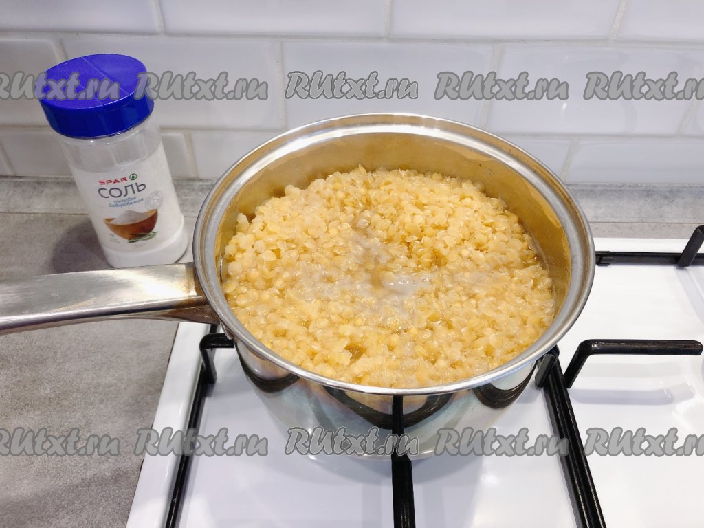 Чечевицу промываем под проточной водой, перекладываем в кастрюлю, заливаем 1 литром холодной воды и ставим на огонь. После того как вода закипит, добавляем соль по вкусу и на маленьком огне отвариваем чечевицу в течение 10-15 минут (до готовности чечевицы, она должна стать достаточно мягкой, но при этом переваренной она быть не должна). Затем откидываем на дуршлаг и отставляем в сторону.