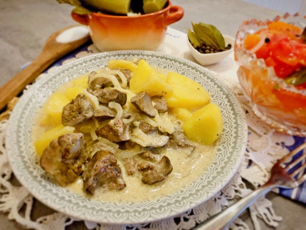 Сегодня предлагаю вам рецепт приготовления нежнейшей куриной печени, тушёной с картошкой и луком на сковороде. Это сытное блюдо прекрасно подойдёт как для обеда, так и для ужина. А его приготовление займёт совсем немного времени. Картофель с печёнкой тушатся в заливке, которая придаёт им пикантность, сливочный вкус и аромат. Отличное блюдо для повседневного меню!