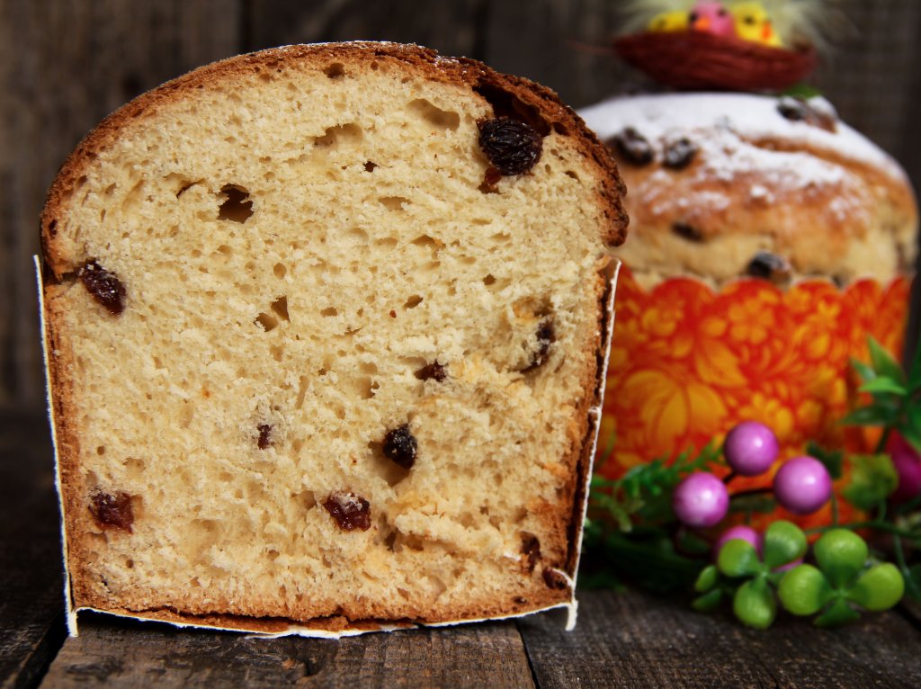 А вот так выглядит сдобный пасхальный кулич в разрезе. У этой выпечки влажный, нежный мякиш и восхитительный вкус.