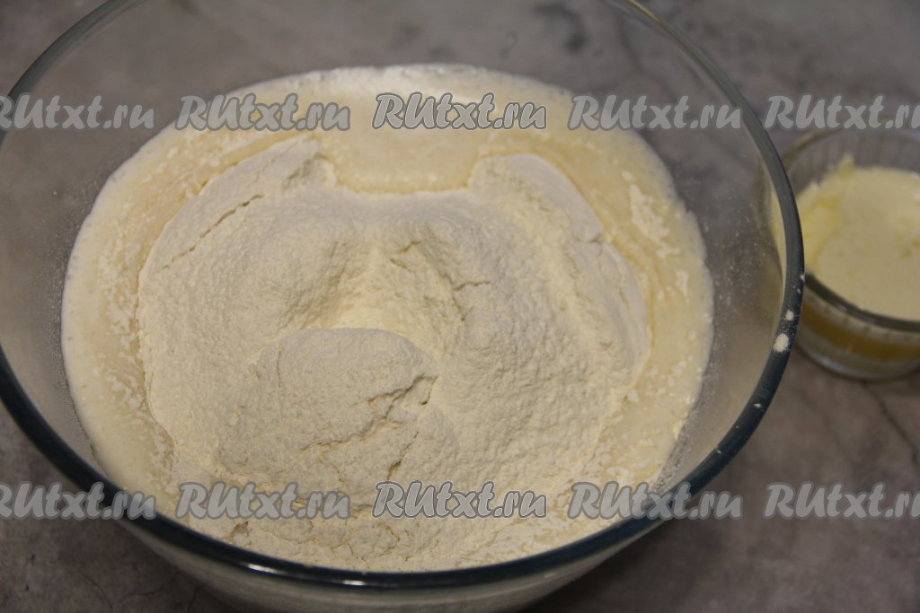 Сливочное масло растопить, дать ему остыть немного и добавить в тесто.