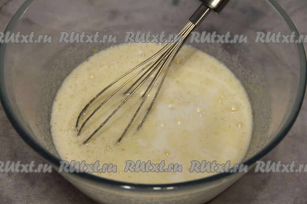Влить молоко комнатной температуры и перемешать до однородности.