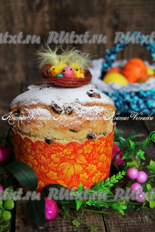 Формы с тестом для куличей поставить на противень и отправить в разогретую духовку, выпекать минут 40-50 при температуре 180 градусов. Время выпечки зависит от размеров форм, так что лучше проверить готовность куличей сухой деревянной лучиной: если лучина выходит сухой из теста, значит наша пасхальная выпечка готова. Достать готовые куличи из духовки, остудить, затем, по желанию, украсить любой глазурью (я просто посыпала верх куличей сахарной пудрой).