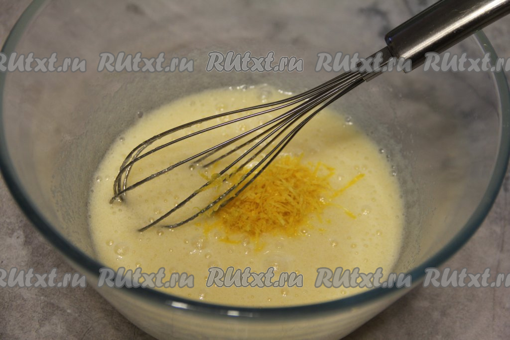 Перемешать массу венчиком. Добавить соль, ванильный сахар и цедру лимона.