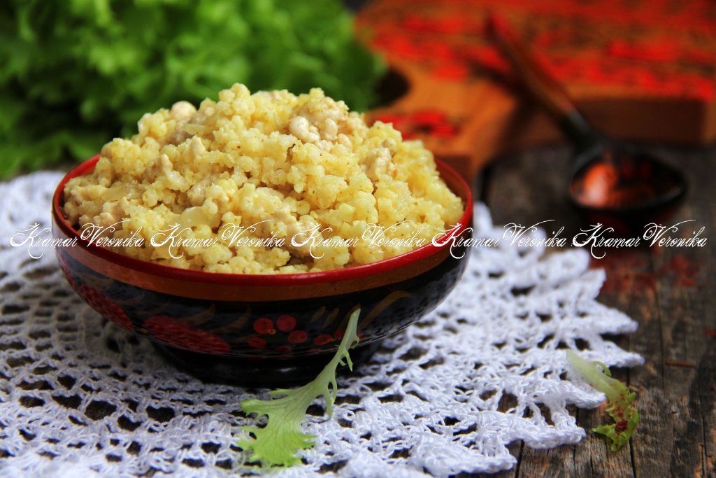 Готовить пшённую кашу с фаршем под крышкой минут 20-25 (до полного испарения воды).